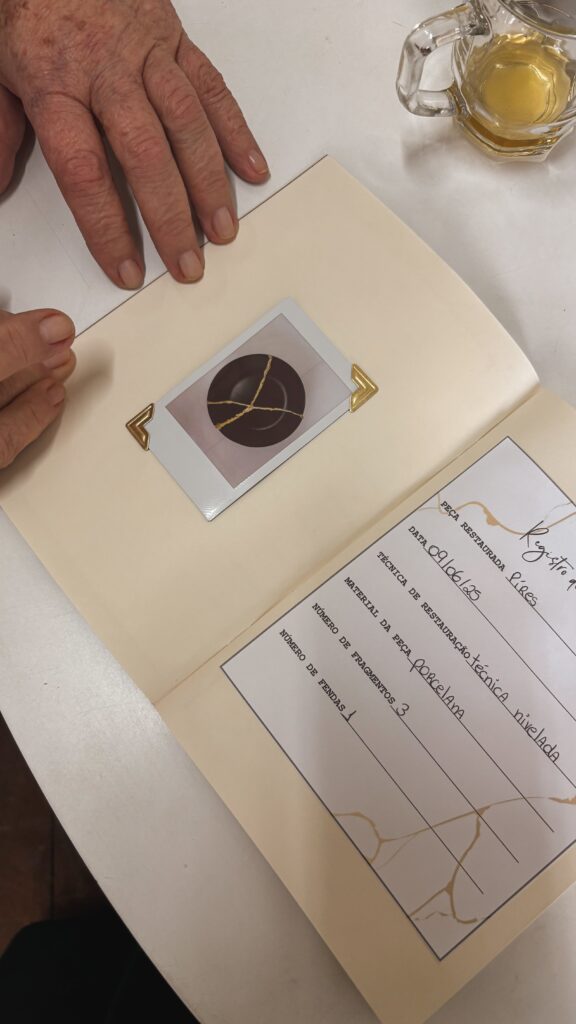 São quatro instalações – de fotografias, de pratos, de lenços e uma escultura – criadas durante as oficinas do Projeto Kintsugi, idealizado e coordenado pela artista Pietra Borges, com o objetivo de promover a autovalorização e a resiliência feminina por meio da arte e da partilha de vivências. Inspirada na filosofia e na técnica japonesa do kintsugi, que valoriza as cicatrizes ao reparar cerâmicas quebradas com ouro, tornando as marcas parte da beleza da peça, a iniciativa utiliza a metáfora para refletir sobre as trajetórias de vida e os processos de reconstrução das participantes.
